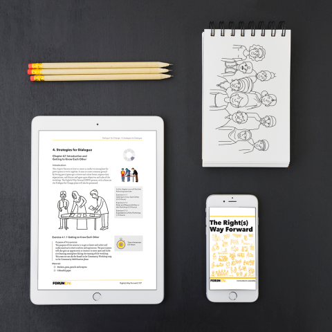 Fasonera har formgivit nyutgåvan av ForumCivs utbildningsmaterial Right(s) Way Forward. Materialet består av två handböcker.
