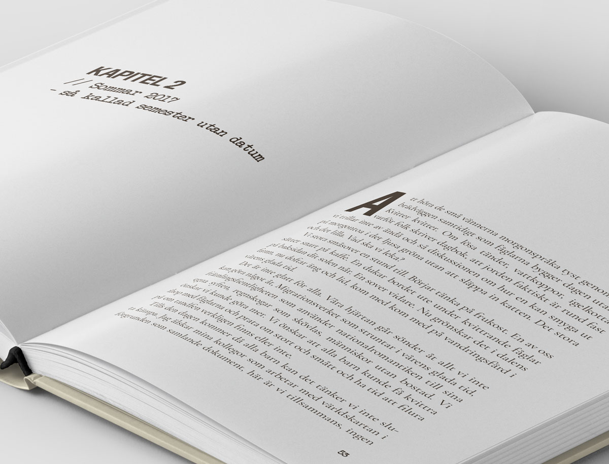 Fasonera har formgivit och gjort sättning åt bokens inlaga och omslag. Likt berättelsen i boken har målet vara att hitta en vardagsnära design som andas hopp och kärlek.