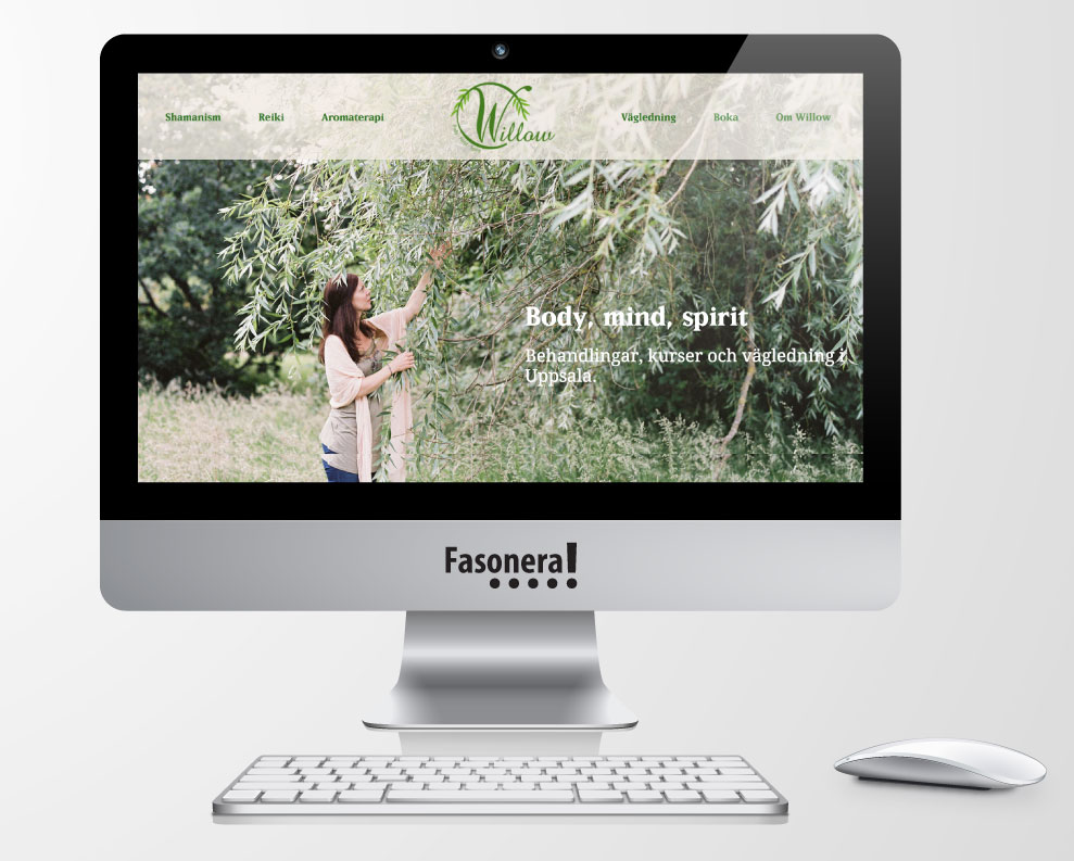 Willow Hälsas filosofi handlar om att vandra varsamt över jorden med respekt för allt liv och i harmoni med naturen. Det gröna och jordnära uttrycket i designen blev ett självklart val. Logotypen är rund och mjuk och med tydliga associationer till Willow (pil-trädet) som företaget valt i sitt namn.